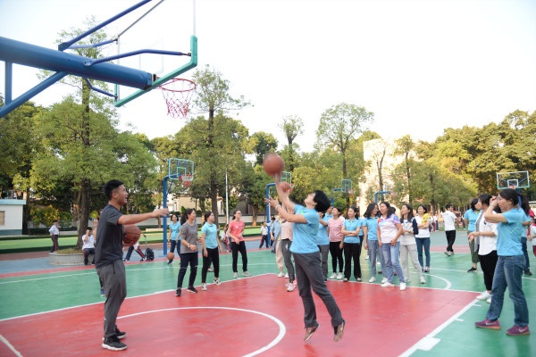 第一个项目是定点投篮比赛,每个级组派出5人参赛,每人投篮5个。一声令下,只见老师们个个摩拳擦掌,全神贯注,奋勇一跃,在经过几次尝试之后,老师们的命中率也越来越高,在投中的瞬间,全场总是掌声雷鸣,令人振奋。第二个项目是乒乓球比赛,每个年级组派出5名代表分别参加单打和双打,比赛过程高潮迭起,选手们一个个精彩的防守和绝杀都引起观众们的阵阵喝彩。最后根据总得分分别评出表现优秀级组,并颁发奖状。活动第三项,工会成员给全校老师颁发活动纪念品。沐浴着阳光,大家带着最灿烂的笑脸留下了最美的大合照。