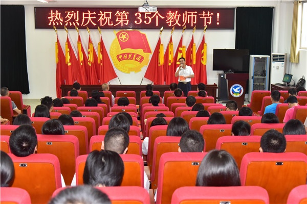 9月9日上午,启发中学开展了庆祝第35个教师节活动。全校老师齐聚学校明礼堂,共同庆祝教师节,庆祝活动在庄严肃穆的国歌声中拉开了序幕,先由学生代表发表感念师恩演讲,接着由双人诗朗诵歌颂老师。