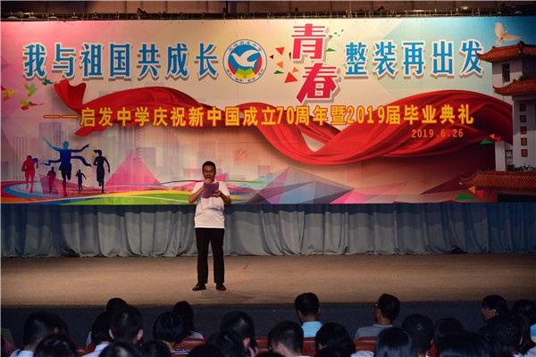 6月26日下午,启发中学在石岐影剧院隆重举行“我与祖国共成长,青春整装再出发”2019届启发中学初三学生毕业典礼。参加此次毕业典礼的有启发中学全体行政、初三级的全体师生、家长和部分学校家委。