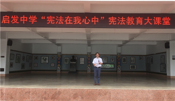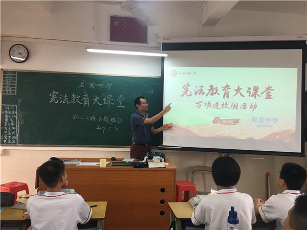 2019年5月20日,启发中学在学校操场利用国旗下讲话时间举行了“宪法在我心中”宪法教育大课堂法治宣传教育活动,随后通过主题班会以及道德与法治课进行了深化教育。