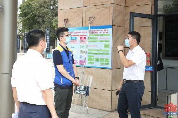 大信学校全体行政和级组长分组陪同专班小组成员到各个场地进行考察,并详细汇报了学校学生返校疫情防控工作的具体措施和后勤保障工作,专班小组开展了认真细致地检查验收工作,并对一些管理细节进行了现场指导。