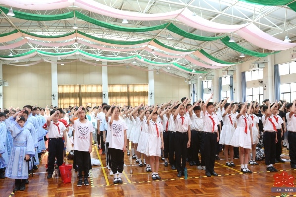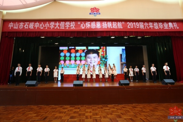 12时,典礼结束,毕业生纷纷登上舞台邀家长、老师、同学合影留念,互道珍重。室外,骄阳似火,又一届优秀的小学毕业生,自此迈着自信的步伐,高擎灿烂的理想走出了石岐中心小学大信学校端庄秀美的校园。