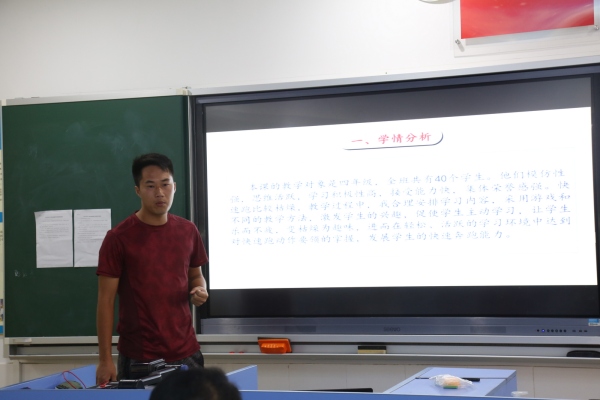 秉承公平、公正的原则,此次说课比赛由学校落科行政、教学顾问担任评委,共17名新教师按学科分三组进行,参赛教师结合PPT进行脱稿说课,参赛顺序由现场抽签决定。说课活动中,各参赛教师从教材分析、教法与学法、教学过程等方面阐述了自己的教学设想。他们挥洒自如,激情澎湃,以精心准备的课堂设计、流利清晰的语言表达,富有逻辑性的生动讲解,给大家留下了极其深刻的印象,得到了评委和听课教师的一致好评。