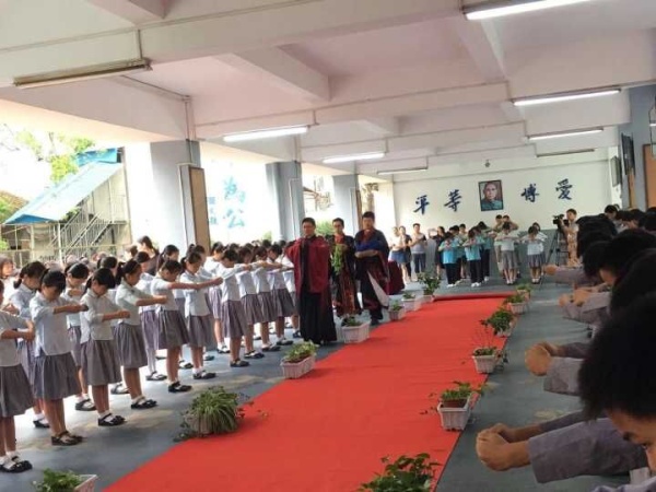 9月28日是一个特殊的日子,是我国伟大的思想家、教育家、儒家学派创始人至圣先师孔子诞辰2569周年纪念日,也是博爱小学全体老师的教师节,为倡导经典文化的回归,弘扬中华尊师重教的传统美德,感受古代与现代教师节不同氛围,博爱小学全体师生及家长代表于早上8:30分,聚集学校大堂,举行“习华夏礼乐,传圣贤智慧” 释菜礼活动。