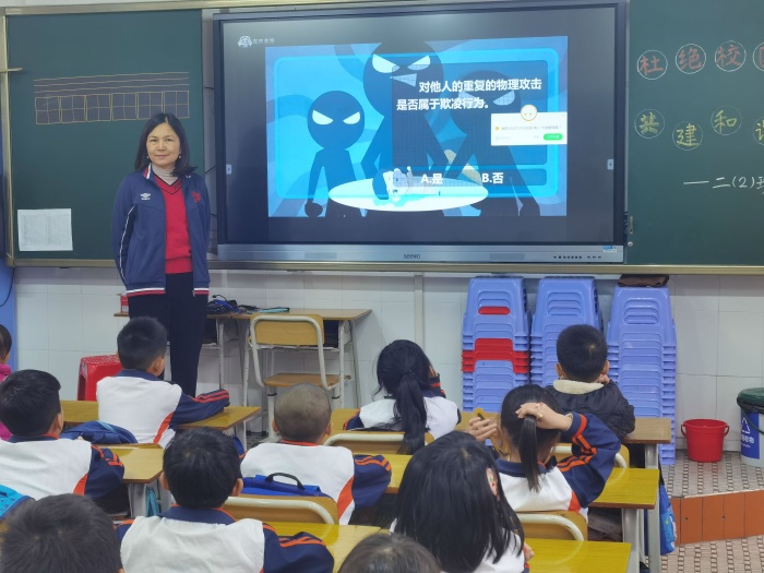 为持续深入做好中小学生欺凌防治工作,2021年11月22日,石岐实验小学利用国旗下讲话向全校师生倡议《杜绝校园欺凌 共建和谐校园》,随后一起观看学习视频。