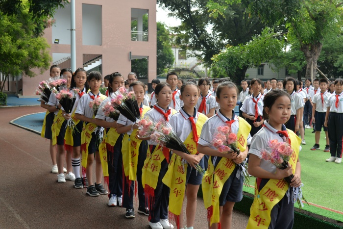 10日上午,石岐张溪郑二小学校园里洋溢着温馨而感人的气氛。全体师生集中在操场,教师节主题活动在庄严的国歌声中拉开帷幕。