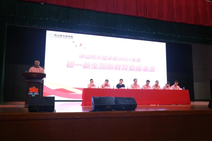 2021年10月11日晚,中山市大信学校2021届初一国防教育结营仪式在学校体育馆隆重举行,校长冯冠祥、副校长杜少君、副校长孙慧涛、学校行政、初一年级全体教师、全体教官、初一学生及学生家长出席活动。此次会操表演分为齐步,正步,口号,停止间隙法,立正,稍息,蹲起等项目,同学们身姿挺拔,口号嘹亮,步伐整齐,斗志昂扬,充分展示了国防教育训练取得的丰硕成绩。教官代表高教官对大信学校同学们吃苦耐劳的精神表示赞美,对会操表演的精彩表示祝贺。孙校长充分肯定并表扬了同学们的表现,对同学们发扬吃苦耐劳、坚忍不拔的精神给予厚望,期待他们在之后的学习生活中成为优秀的学子。马心怡同学代表全体七年级学生发言,分享了这几天国防教育训练的感悟和收获,同时表示在以后的学习生活中继续发扬训练期间的坚韧不拔的意志,以良好的状态继续初中生活。