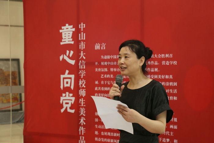 开幕式由杨主任主持。由教研员周文丽致词,他代表全区对本次作品展的开幕表示热烈的祝贺。并给予学校美术教育发展高度的肯定,最后对美术发展的方向给予了宝贵的意见。