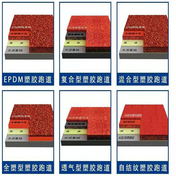 塑胶跑道又称全天候田径运动跑道,它由聚氨酯预聚体、混合聚醚、废轮胎橡胶、EPDM橡胶粒或PU颗粒、颜料、助剂、填料组成。塑胶跑道具有平整度好、抗压强度高、硬度弹性适当、物理性能稳定的特性,有利于运动员速度和技术的发挥,有效地提高运动成绩,降低摔伤率。塑胶跑道是由聚氨酯橡胶等材料组成的,具有一定的弹性和色彩,具有一定的抗紫外线能力和耐老化力是国际上公认的全天候室外运动场地坪材料。