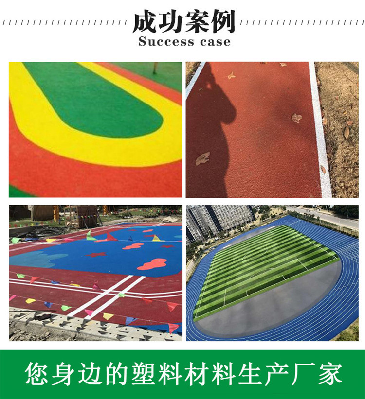 色彩:聚氨酯颗粒,表面颜色柔和,颗粒状表层,防止耀眼刺眼阳光的反射,美观耐久,并可采用多色彩搭配。