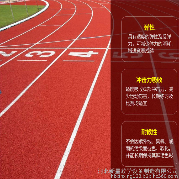 塑胶跑道的主要成分是丙烯酸和高质量树脂,其材料类似于盛放食品的方便袋,符合环保型面层材料要求。塑胶跑道的原材料对环境、人体无毒无害。且具有防紫外光、防磨损、防爆裂、抗老化、寿命长、容易保养、维修费用低等特点.