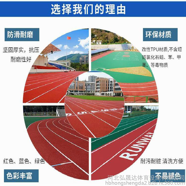 塑胶跑道又称全天候田径运动跑道,它由聚氨酯预聚体、混合聚醚、废轮胎橡胶、EPDM橡胶粒或PU颗粒、颜料、助剂、填料组成。塑胶跑道具有平整度好、抗压强度高、硬度弹性适当、物理性能稳定的特性,有利于运动员速度和技术的发挥,有效地提高运动成绩,降低摔伤率。塑胶跑道是由聚氨酯橡胶等材料组成的,具有一定的弹性和色彩,具有一定的抗紫外线能力和耐老化