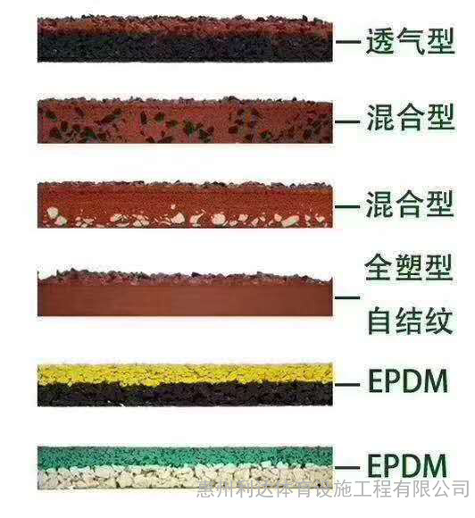1、采用国际田联认可的复合结构,上层为pu颗粒或epdm耐候性环保彩色颗粒,渗水的聚氨脂密封,下层采用机械施工缓冲底垫。符合国际比赛标准。标准厚度13mm。