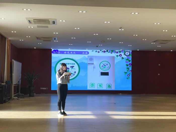 本次评选主要是由各特色班级班主任,对自己班级的特色创设历程进行讲演与展示。参评班主任激情饱满,准备充分,精彩的解说赢得在场老师的阵阵掌声。三(3)班王影老师的“小小红军特色班”,班级学生现场亮嗓,唱革命歌曲,高呼“祖国万岁,祖国,我爱您!”,展现了学生的爱国情怀。五(1)班田蓓老师的“青竹班”,以“正直、顽强、团结”的精神,引领学生在行为习惯和道德品质上一点一点进步,小步前行。三(10)班卢丽雯老师的“拾梦班”,以梦为马,以阅读为特色,坚持做阅读两年之久,给学生打下了坚实的阅读基础。三(16)班吴仪老师的“牵牛花班”,以牵牛花向上攀爬的精神,带领班级学生快乐学习,健康成长。三(13)班梁凯琳老师的“小水滴班”,以水文化为特色,营造了一个包容、和谐的班集体。
