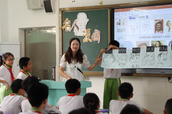 与此同时,该校校庆主题书画作品在大堂同步展出。据悉,本次书画展早在上学期就已开始策划、筹备,从学校的特色教育出发,美术科组的老师们带领社团的孩子们精心准备,展出了版画、水彩画、书法、雕刻等形式各样的作品,现场“圈粉”无数,有的驻足在学生的书法作品前,啧啧称奇;有的流连于版画作品中,细细品味;有的拿起了手机,留下一份份精彩的记忆。