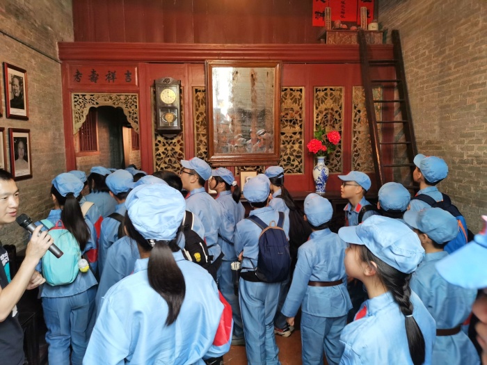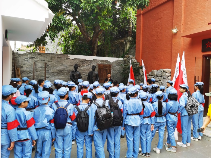 4月25日,天公作美,风和日丽、碧空如洗。中山火炬高技术产业开发区第一小学六年级(4)班在家委的精心组织下,全班51个亲子家庭齐聚一堂,出发前往中山沙溪镇明亭村参观申明亭革命史迹馆和扬子江故居,开展以“踏寻红色足迹,共庆建党100周年”为主题的亲子研学活动。