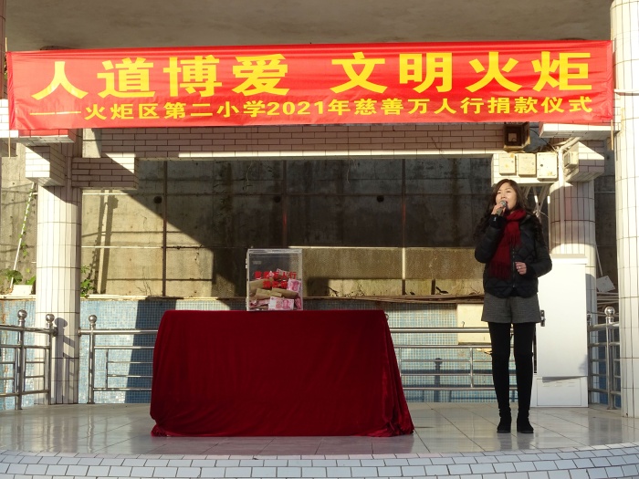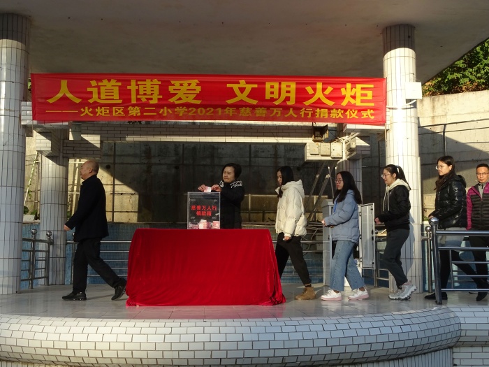 为积极响应2021年市、区慈善万人行活动倡议,弘扬人道博爱精神,倡导中华美德,唱响新时代主旋律,营造互帮互助互爱的社会氛围,为建设文明火炬区加快高质量崛起贡献力量,2020年12月31日上午,开发区第二小学举行主题为“人道博爱,文明火炬”2021年慈善万人行义捐活动。