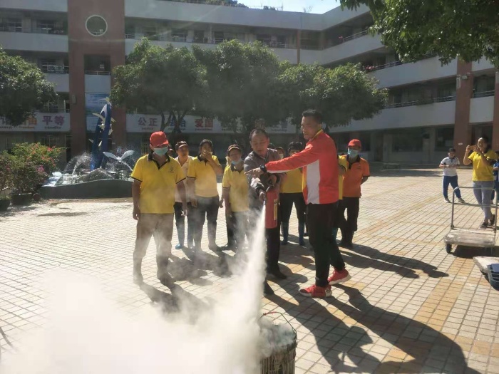 11月12日,学校食堂以“消防宣传月”为契机,积极开展消防安全演练,并邀请安全干事吴计亮老师参与督导。学校保安队龙队长主讲消防安全知识,并号召食堂职工积极参与防火安全教育演练活动。通过演练,向后勤人员普及了相关消防知识:一是要熟悉工作场所的出入口,当发生火灾,用湿布捂住口鼻,弯腰有序镇定逃离火灾现场;二是学会判断火势情况选择性报火警;三是要迅速通知楼上师生,指引向火源远的楼梯方向逃离;四是当厨房油锅类起火时,不能用水灭火,选择锅盖或湿布盖上火源,采用断氧灭火法;五是发生火情后,应关上电源总开关。