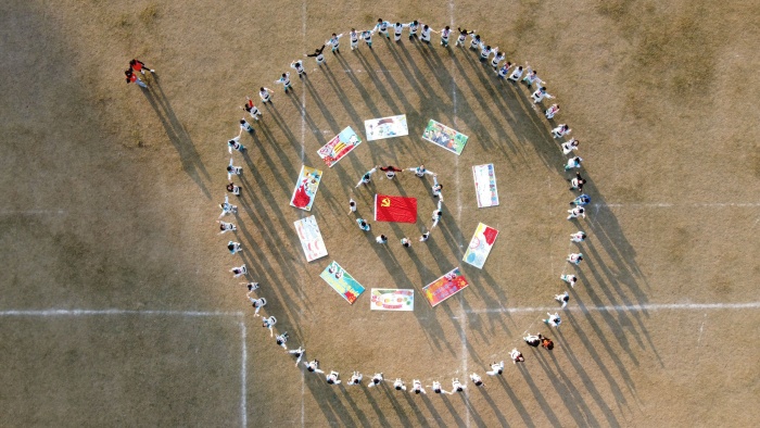 随后,活动以主题明确而又接地气的百人绘画的形式生动活泼地展现了十九届五中全会内容的精神,同学们的绘画有的写实,有的对祖国未来前景的想象,绘画材料多样。期间,火炬二中张慧暖,魏利华,胡幸余三位艺术老师在一旁作指导。他们充分尊重学生个性,让学生自由发挥,同时也参与到绘制中来。此外,活动还以青少年喜闻乐见的航拍、标语创意造型拍、视频拍摄等形式巩固学习内容,让活动成效进一步延伸至全校师生。