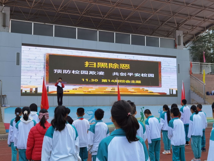 为深入贯彻十九大精神,切实保护学校全体师生的合法权益,维护校园的安全稳定,杜绝校园黑势力和欺凌现象的发生,11月30日上午,火炬二中面向全校师生开展了一次“扫黑除恶进校园,平安与我共成长”主题校会。