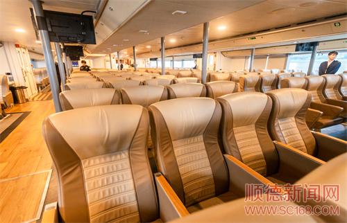 复航首日,新一代的全碳纤双体高速客轮“钰珠湖”号将为旅客提供客运服务,顺德往返香港时间在1小时50分钟左右。记者走进“钰珠湖”号客轮内部,共有两层,首层设置222个经济舱客座,每排设置2-4个座位,餐厅、厕所、母婴室一应俱全,为了给乘客安全和优质的客运体验,客运航船内的母婴室设有与经济舱客座相同的座椅。
