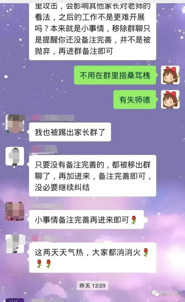 期间有被踢的家长也确实是又加进来了并且表示自己也被踢了。