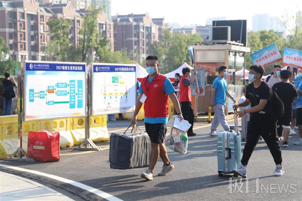 家长送到校门口,新生自行进入校园,家长不能陪同。该校党委书记向家文在校门口“把关”,他告诉记者:“学生进入大学,要学会自主自立,不能由家长包揽一切,自己完成报到手续,就是进入大学的第一课。学校已安排老师和学生志愿者提供引导、帮忙搬运行李。家长要‘放手’,也可放心。”