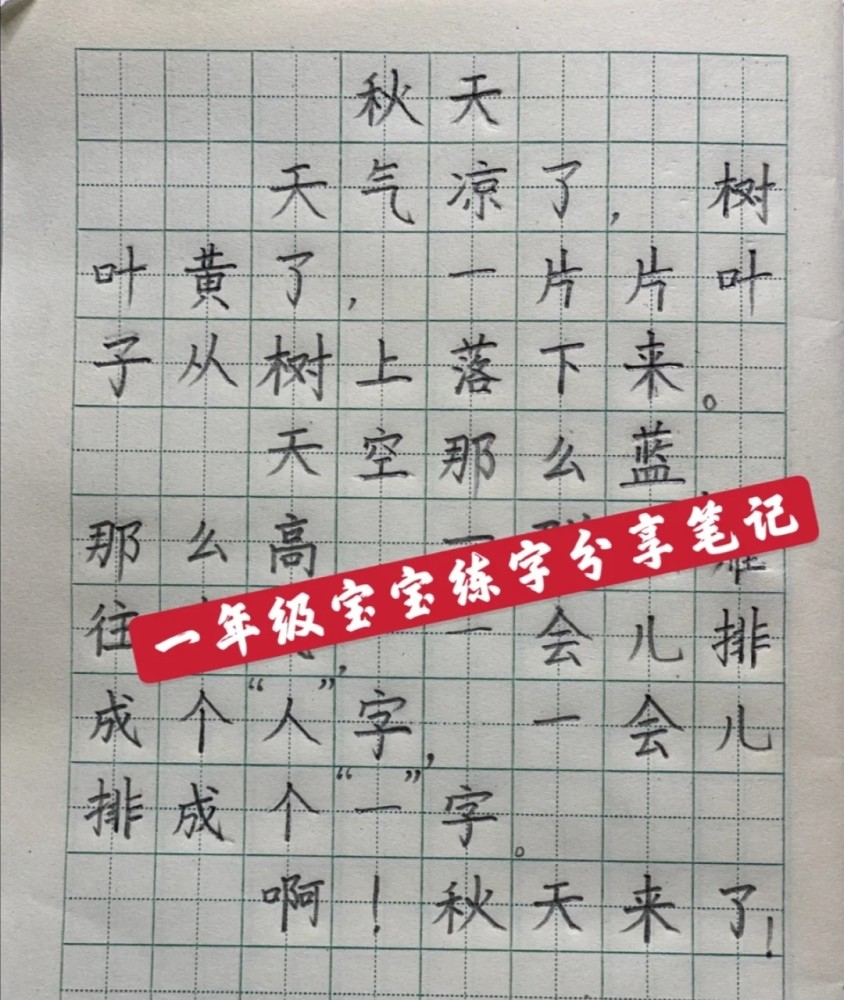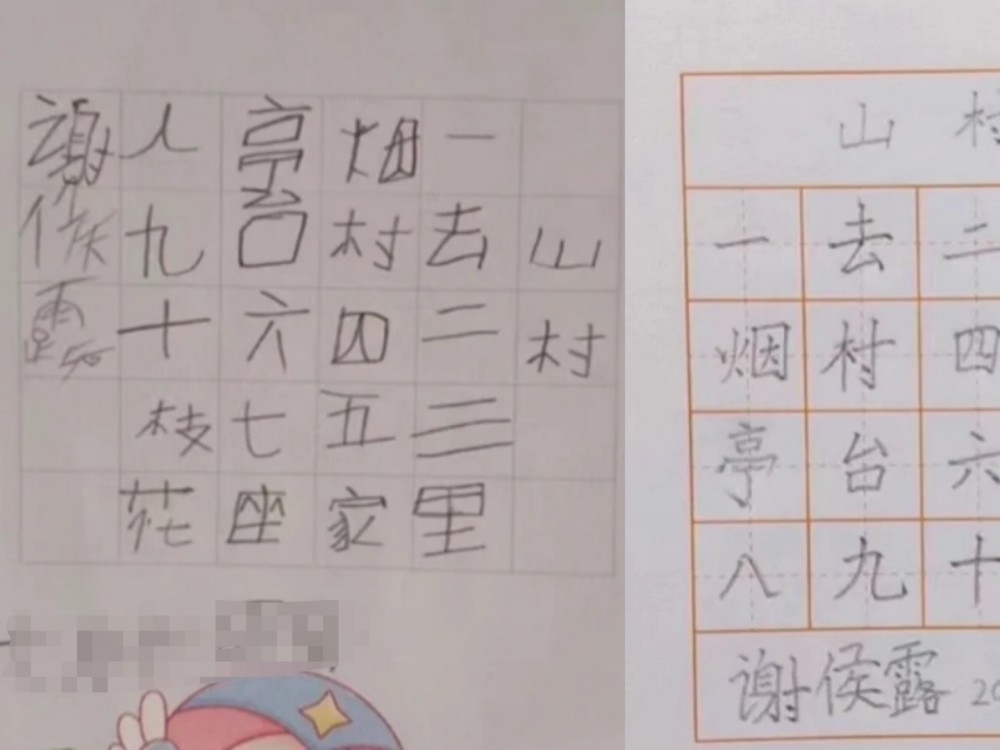 这个小学一年级孩子的家长每天督促孩子练字,没多久,孩子的字有了很大的变化,以前写得七零八落的名字,现在变得工整紧凑了。