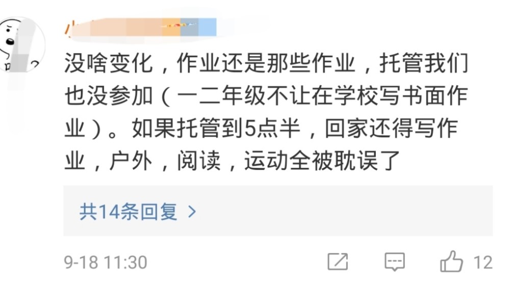 课后延时服务开始后,一部分家长很是开心,以前陪娃做作业做到很晚,还会因为娃做不出题,自己没办法给娃讲懂而焦虑万分,现在好了,可以下班后亲自从容接娃回家,此时,娃的作业在学校已经写完,于是自己和娃迅速恢复了友好亲密的相处模式,该散步就散步,该吃喝就吃喝,简直不要太轻松。