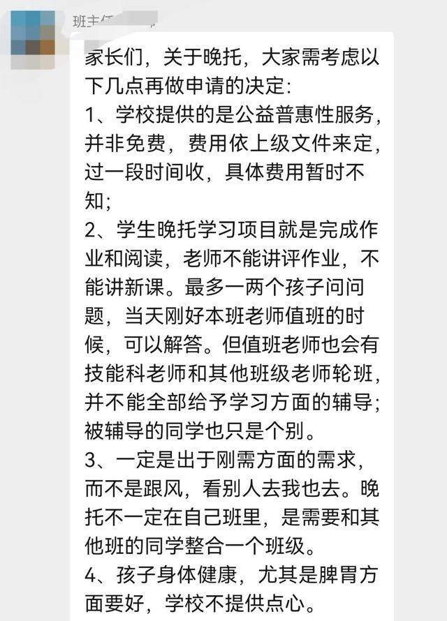 随着课后延时服务的推出,某小学班主任在家长群中提出了7点看法,让家长们认清了课后服务的本质,同时建议家长们结合实际情况审慎抉择。