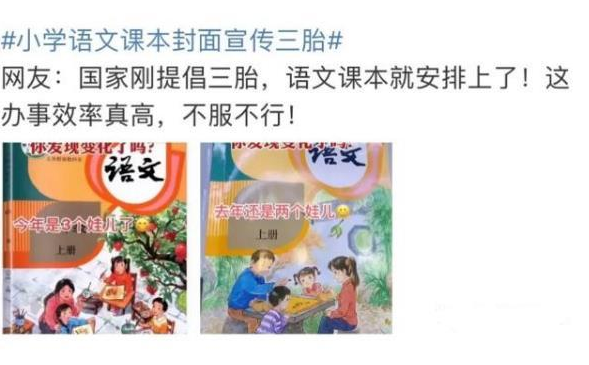 在相关部门推出三胎政策后,就像是在家长的心里扔了一颗深水炸弹,在网络上也引起了很多话题的讨论,有不少家长都表示不会再生三胎了。其实从小学生的教材封面就可以看出,家长对于三胎政策比较敏感。