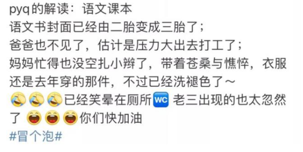 从网友们对小学语文教材封面的联想,也能感受到对三胎问题的生育焦虑和教育焦虑。不过这一系列问题都在进一步解决中,在观望三胎政策的家庭也可以继续等待政策的改善。