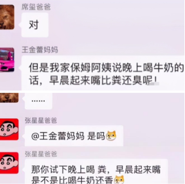 每个家庭的经济情况不同,家长的教育水平也大相径庭。因此,家长平时在群里沟通的时候,经常会出现大型的“社死现场”。尤其是遇到张星星爸爸,更是让人下不来台。这不,看到其他家长说保姆和牛奶,张星星爸爸回怼别人句句扎心,真是专治各种凡尔赛。