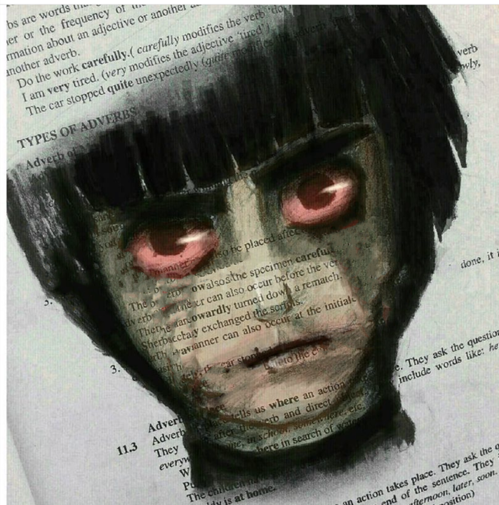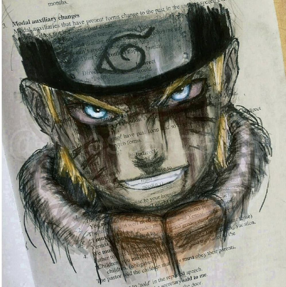 如果老师不过来看一看这位同学的课本,完全会觉得他是在上课认真听讲做笔记呢。其实他是在用彩铅画自己喜欢的动漫人物呢。