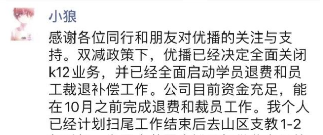 同时,新东方在线副总裁、东方优播CEO朱宇也表示,个人计划未来将去山区支教1-2年。