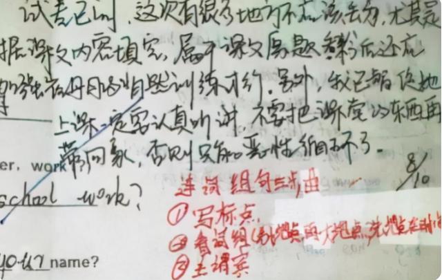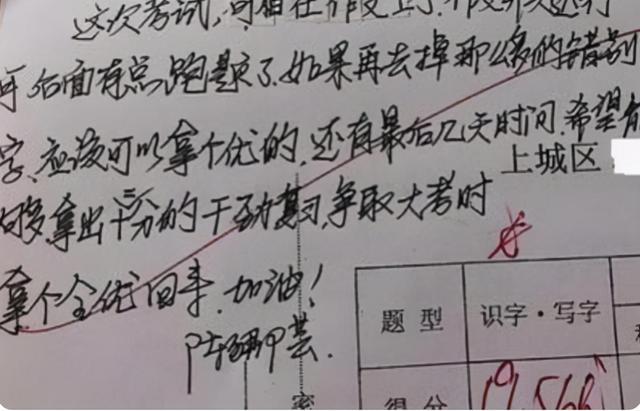 就在这样的教育环境下,有的家长的用心就会显得格外贵重了,学生试卷上不仅有他们名字,甚至还有一些修改评语和总结。