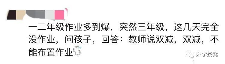 有三年级的家长也在说,“一、二年级作业多到爆,没想到三年级完全没作业了”。