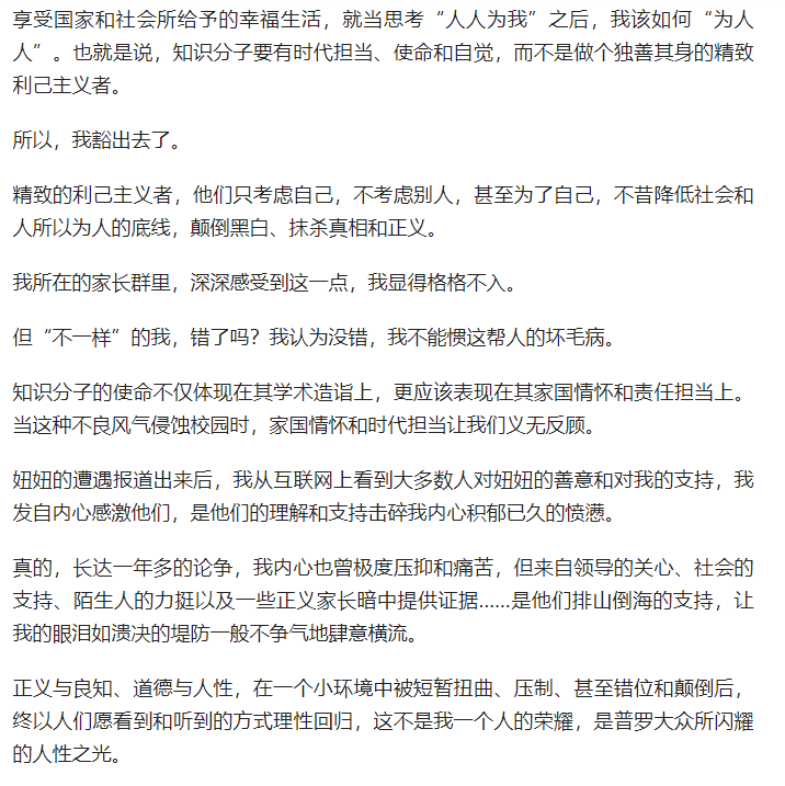 第六、37位家长的做法,可能是跟“做不做鸡娃”有点关系,但不要忘了,两次的请愿书,都是在其家长强行闯入校园之后发生的!硬要把这事,完全跟“减负”、“鸡娃”划等号,太牵强了!