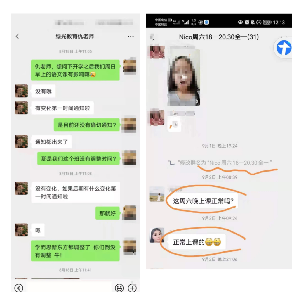 直至9月2日绿光教育停业公告的前一天,仍有工作人员利用自己是教育局白名单企业鼓动家长续报课程。星空体育中很大一部分家长在6-8月(双减政策出台后)在绿光工作人员的指导下进行了大额续费,但并未享受到对应课程服务。同时为规避国家“双减政策”,绿光教育销售人员表示可以实现“周中上新课,周末托管”的形式开展课程,所购买的课程服务不会受到影响;期间家长通过面谈、电话、微信等方式询问校区校长与销售人员,相关人员对于课程服务始终表示虽然绿光教育会调整上课时间,但课程会继续,换而言之继续上课没有问题。