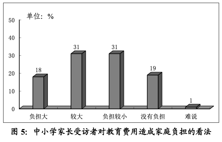 国家统一实施九年义务教育制度,为什么还会出现上述的观点呢?调查发现,在孩子处于免费义务教育阶段的家长看来,学校费用支出并不是费用高的主要原因,孩子日常的校外辅导、补习费等才是支出的“大头”。