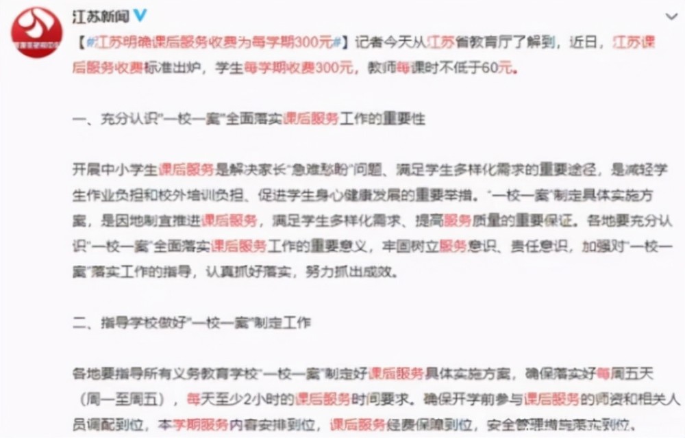 从各个省市的课后延时服务收费标准来看,其实是很低的,比如江苏一个学期的费用在300元,每个月不到一百,很多地区也是如此,这对大部分家庭来说,都不是问题,毕竟现在随便买点吃的就可能几百元了。