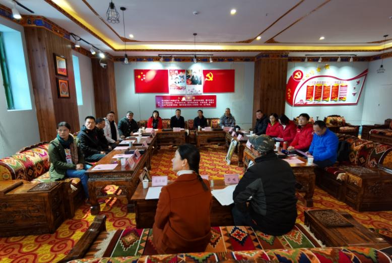 会上,广东省第九批援藏工作队鲁朗工作组蔡畯就进藏以来鲁朗组团工作作简要汇报,林芝市鲁朗景区管理委员会文化旅游促进科科长凌源俪对鲁朗旅游资源进行了推介,并对旅游优惠政策进行了介绍。广东画中画艺术文化传播有限公司总经理李东向大家介绍了“艺起来,绘未来”公益非遗艺术培训项目(“广府金绣”唐卡手工艺术品),并现场展示了利用“广府金绣”工艺制作的美术作品。林芝市人大代表、工商联副主席,西藏林芝智慧旅游发展有限公司董事长秦磊对鲁朗创客空间进行了介绍。随后,各单位就两地旅游项目合作及非遗项目落地鲁朗进行了热烈充实的探讨。