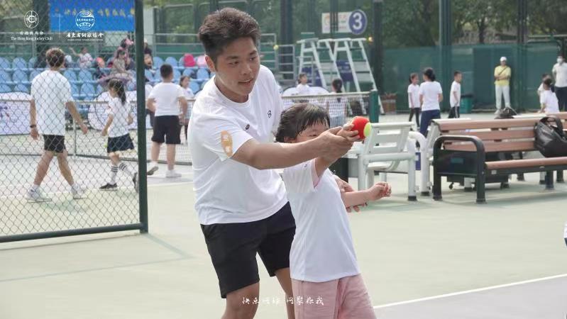 3月20日上午,2021年香港赛马会助力粤港澳大湾区青少年公益网球培训第1期广州奥体站在广东奥林匹克体育中心网球场正式开营。