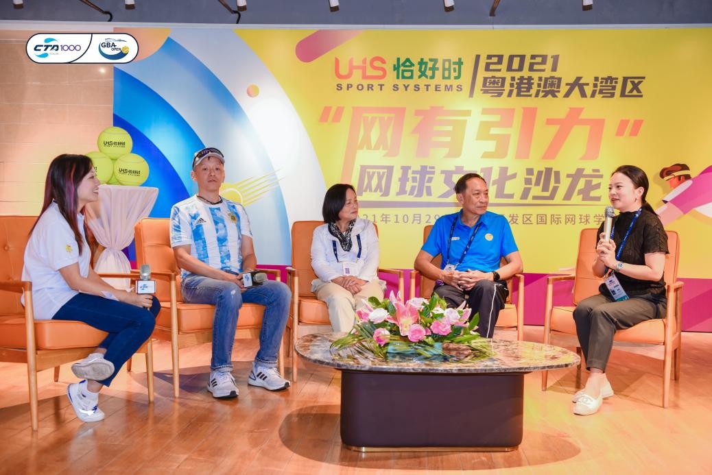 10月29日,2021中国网球巡回赛?时代中国?广州黄埔站暨粤港澳大湾区网球公开赛结束四分之一决赛的争夺。赛场外,由广东省网球协会主办,广东恰好时体育有限公司冠名赞助的恰好时·2021粤港澳大湾区“网有引力”网球文化沙龙也在广州开发区国际网球学校星空体育展览室成功举行,来自粤港澳三地的网球人共聚一堂,在回顾大湾区网球文化融合历史的同时,也对粤港澳网球未来加强交流、共同发展前景寄予更高期待。