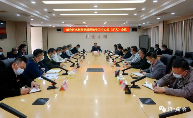 区水利局召开党组理论学习中心组(扩大)会议,强调要进一步提高政治站位,牢固树立“一盘棋”思想,准确把握市委和区委部署要求,紧扣葵乡水利工作实际,以工程化项目化方式,推动市委和区委全会制定的各项目标任务落实落细落地。要紧扣新会水利发展“十四五”规划,从更高站位统筹谋划水利事业,跳出水利看水利,站在湾区谋发展,以更实作风抓实抓好水利工作,坚持守正创新,全力锻造高素质、专业化水利队伍,用更新举措克服解决水利难题,按更高标准奋力谱写水利新篇,推动市委、区委全会精神在水利系统落地生根。
