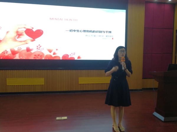 接着,黄老师围绕“心理危机的识别和干预”、“常见心理问题的应对”“教师自我调适”这三个方面与现场班主任进行交流分享。黄老师首先分享自杀学生在各年级所占的比例,提出自杀危机一个都嫌多的观点,同时指出面对严重危机,切忌想当然,也“无需害怕”,危机亦为转机!进而和老师分享要关注心理高危学生的日常关注事例,遇到危机发生时,要理解学生的感受,确保生命安全,联系家长,启动学校应急系统,拖延到专业救援到来。黄老师提到,人人都可能面临心理困扰,大部分的心理问题都是心理亚健康,现代社会,越来越多的人借助心理咨询完善提升自我,教师们要有维护自己心理健康的意识,对自己负责,先关爱自己、再去关爱学生、助学生健康发展。最后,与老师们共勉:做好学生的重要他人!
