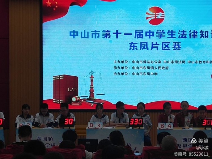 为推动“法治进校园”,持续开展在校青少年普法教育活动,促进法治建设和校园文化有机结合,提高青少年的法律素养,培养青少年的明辨是非能力、自我保护意识和守法观念,营造良好的校园法治文化氛围,中共中山市委宣传部、中山市依法治市办公室、中山市人大常委会教科文卫、中山市教育和体育局、中山市司法局、中山广播电视台等多部门一起举办中山市第十一届中学生法律知识竞赛。