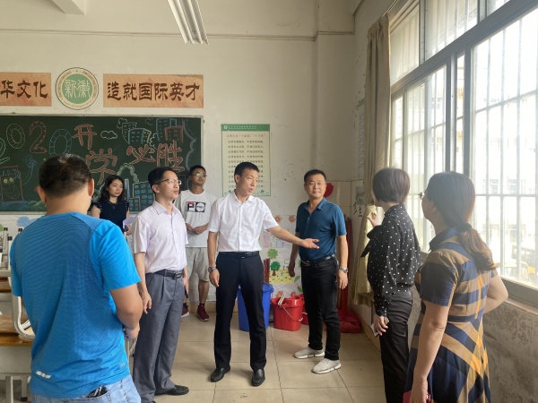 7月18日上午,东凤镇镇长李翔宇、党委委员刘燕文,在镇文体教育局、镇教指中心相关负责人的陪同下来到穗成新徽学校考点,检查2020年中考准备工作,校长艾时胤、副校长邓亮、教务处主任文燕芳陪同检查。