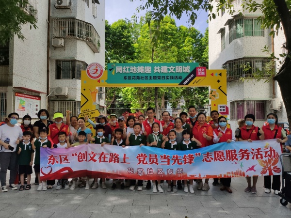 当日下午3时,东区柏苑中心小学支部书记林小舟带领党员教师、部分亲子家庭提前来到花苑社区红心文化广场帮助社区做准备工作。当日艳阳高照,天气炎热,但大家热情高涨,忙前忙后,共同为“创文”出一份力。