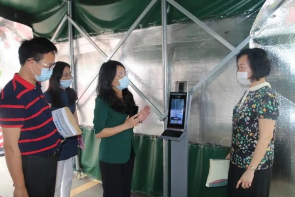 陈委员一行听取了朗晴小学郑凤姚校长的详细汇报,检查组按照“高”、“准”、“深”、“实”的标准和要求,深入教室、饭堂、临时健康观察室、校医室、临时监测点等重点区域检查防控措施落实情况,仔细核查学校疫情防控工作相关制度、疫情应急处置流程、防控知识宣传、学生复课方案等资料,认真分析研判。各专家组对该校学生返校复学准备和疫情防控工作给予高度肯定并给出指导性意见。